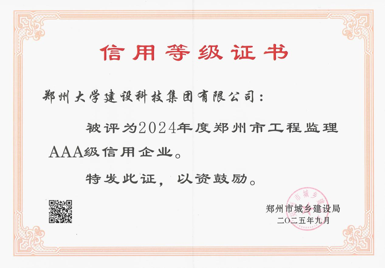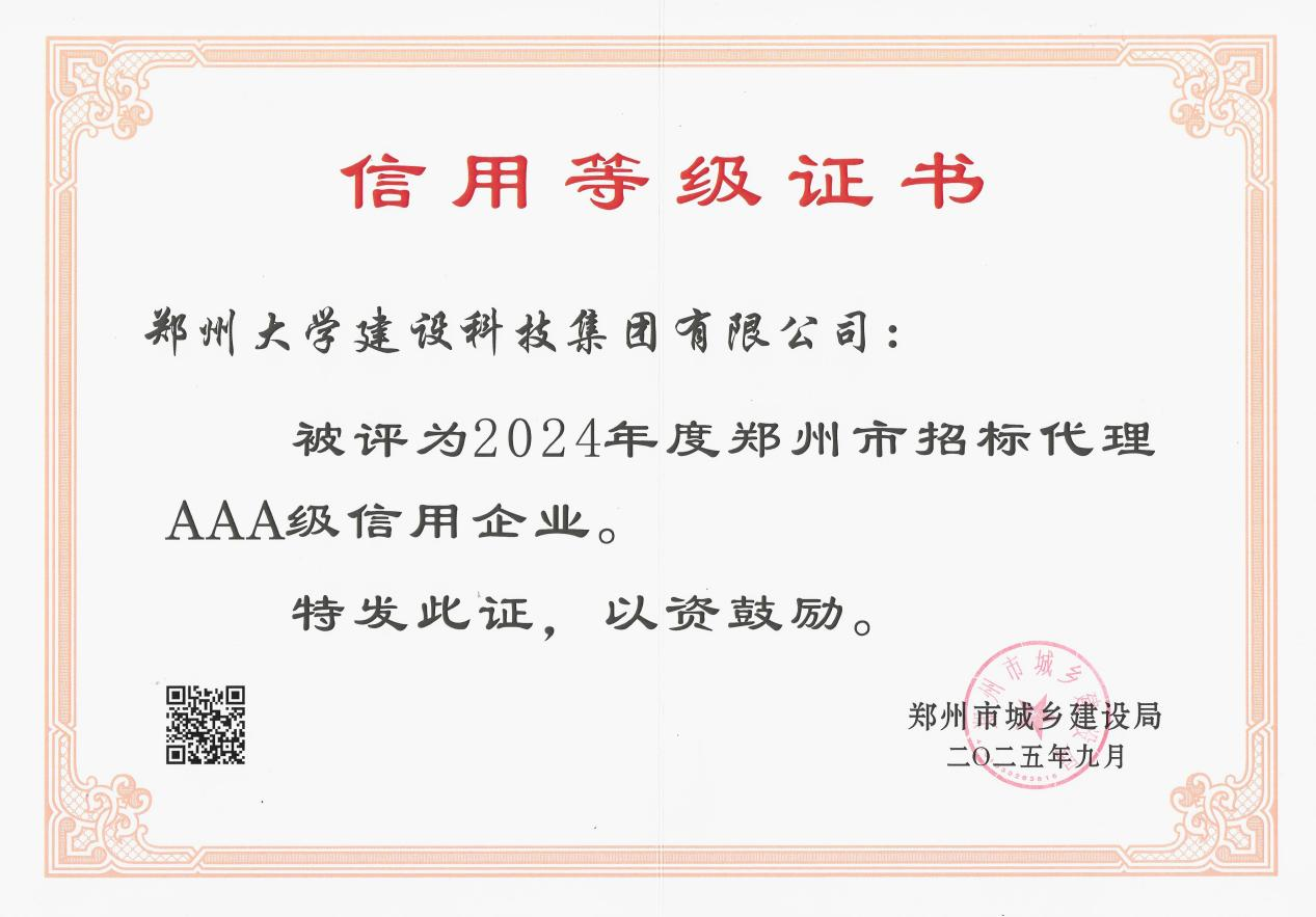 为发挥典型示范引领作用,大力营造建筑市场诚实守信的良好氛围,郑州市城乡建设局在全市范围内组织开展了工程建设诚信典型企业评选活动,经过推荐、评价、公示等程序,于近日公布结果,公司成功获评2024年度郑州市工程监理AAA级信用企业和招标代理AAA级信用企业荣誉称号,这也是我公司多年蝉联该荣誉。