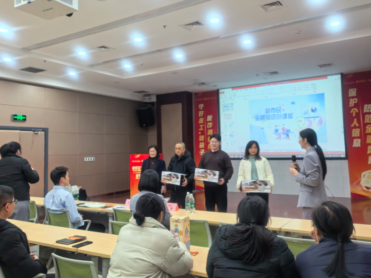 本次活动邀请了郑州市公安局反诈中心孙宇警官进行专题宣讲。孙警官结合多年反诈工作经验,通过真实案例剖析,详细讲解了网络贷款、虚假投资、冒充客服、杀猪盘等常见诈骗类型的作案手法、特点及防范要点,提醒大家时刻保持警惕,切勿轻信陌生信息。随后,招商银行工作人员从金融机构视角,分享了账户安全管理、转账风险防范等实用技巧,引导大家科学守护“钱袋子”。活动期间设置了三轮幸运抽奖环节,有效调动了现场氛围。