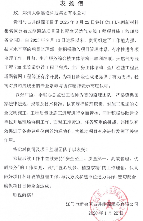 项目的首方砼浇筑只是起点,后续的建设任务依然艰巨,郑州大学建设科技集团有限公司有信心、有能力,以高度的责任感和使命感,履行监理职责,与建设单位、承建单位及各相关部门通力协作,齐心协力、攻坚克难,为江门珠西新材料集聚区分布式能源站项目的顺利推进保驾护航!